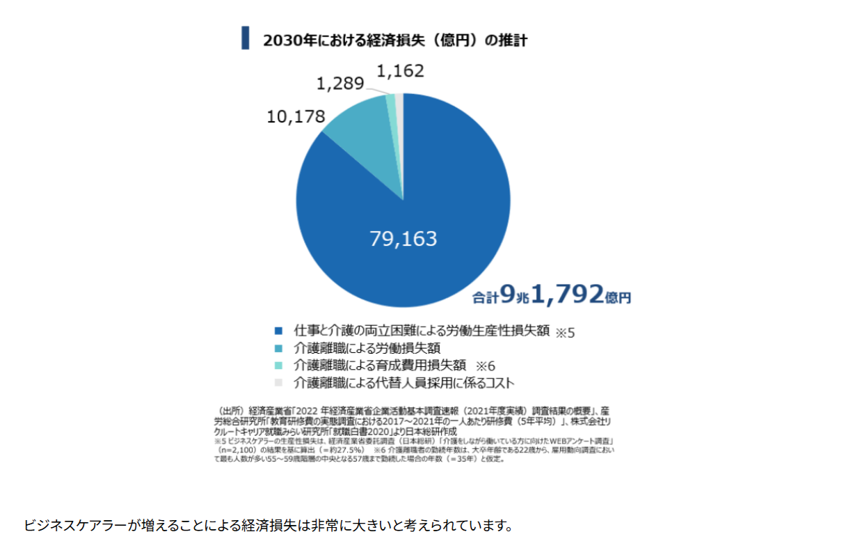 2030年度にはビジネスケアラーが314万人、経済的損失が約9兆円です。