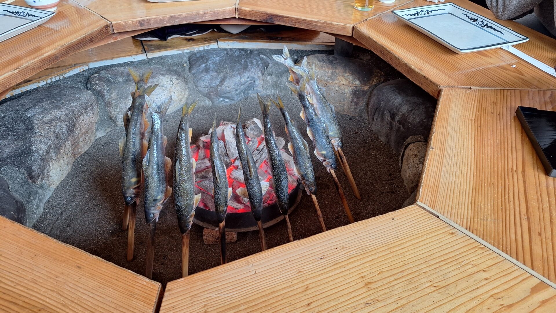 写真は鮎やなで食べた鮎です。「鮎やな(あゆやな)」とは、主に川に仕掛けて鮎(あゆ)をとるための伝統的な漁法や、その漁場・施設のことを指します。地域の秋の風物詩としても知られています。宮崎県延岡市の「五ヶ瀬川の鮎やな」は特に有名で、観光スポットにもなっています![]()